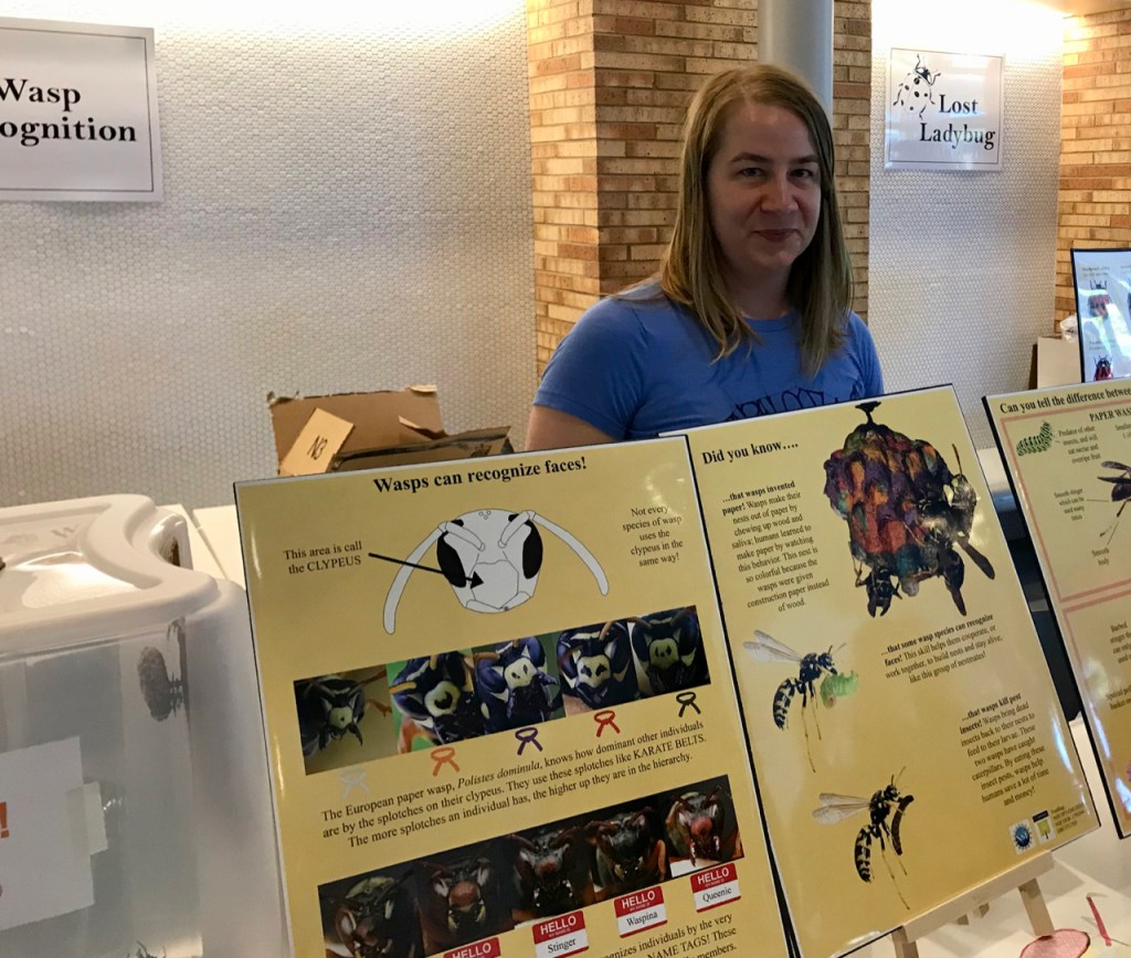 SM: I’ve done social insect outreach as part of Insectapalooza, an annual event in which thousands of local residents come to Cornell to learn about the exciting world of insects. Along with the other members of the lab, I explained to visitors why wasps are so cool. We set up a “meet a wasp” booth where visitors had the chance to touch a male wasp (males lack stingers) and this was a huge hit, especially with little kids. It was really rewarding to see people changing the way they thought about these often-misaligned species.