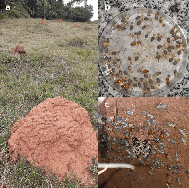 The discovery of the mite and its ability to rapidly increase its population was unplanned. We collected nest fragments of the termite Cornitermes cumulans (Kollar 1832) (Blattodea; Isoptera: Termitidae) for other objectives. However, we found that some individuals had one or two mites attached to their body, mainly on the head. We sent some to the acarology laboratory at the Federal University of Viçosa, and it was discovered that it was actually a new species!