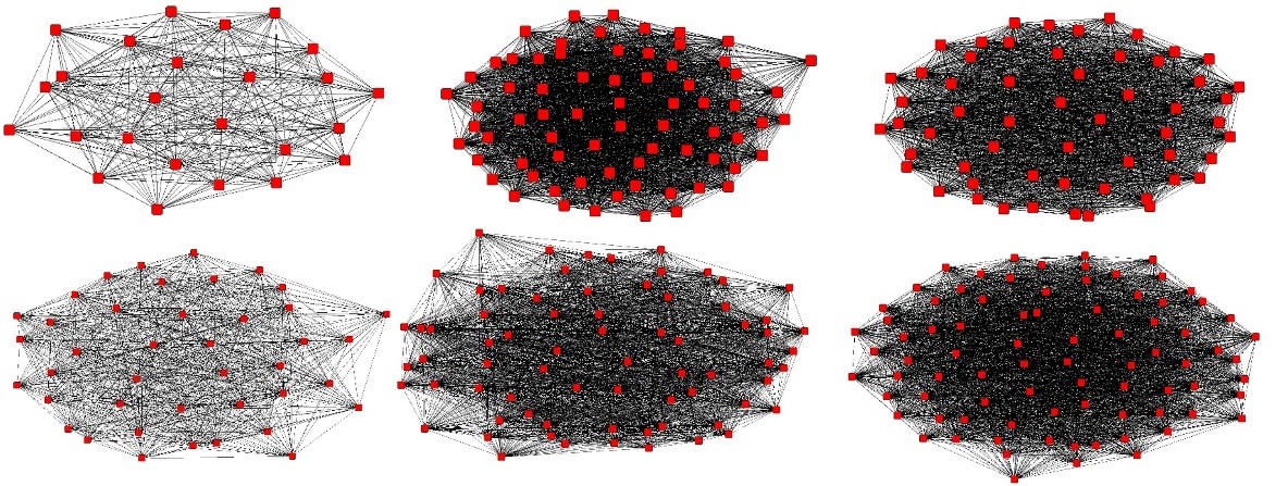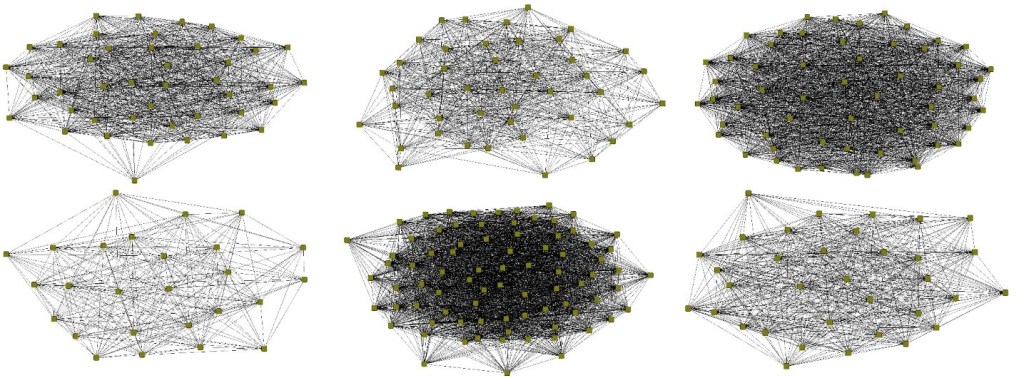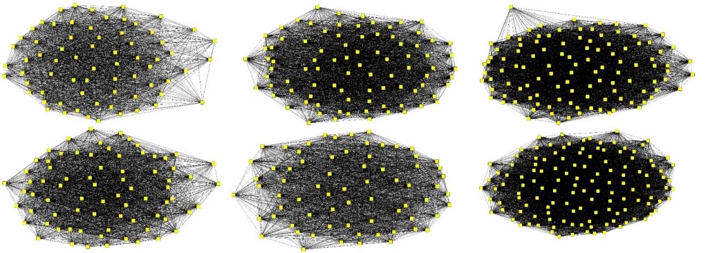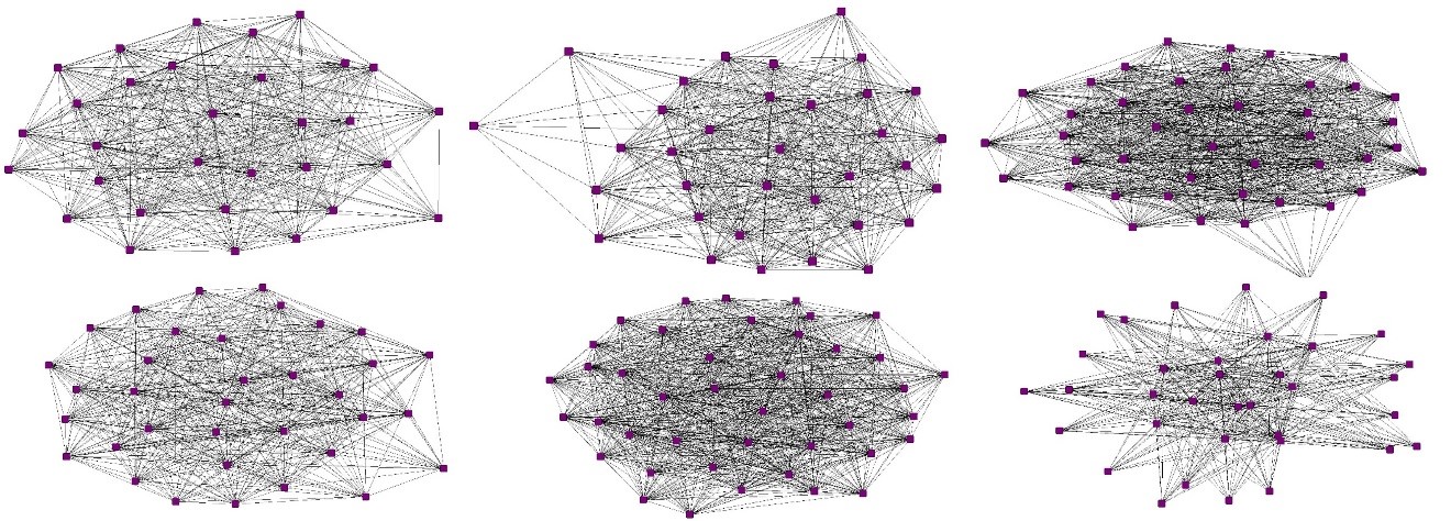 But how is this possible? Visually, we can see some differences, but we need to prove it. In network studies, we use network indices to describe network properties. Every index tells something about the group we modeled. Multiple indices are available in the literature; here we used three basic indices: Network Centralization Index (NCI), Clustering Coefficient (CC), Average Path Length (APL), and Small-World Index (SW). NCI gives the hierarchical properties of a group, CC is an indicator of the rates of cliques within the group, APL calculates the average “step” (network edges) between all individuals, and SW represents how many “neighbors” are required to reach everyone within the group. In other words, NCI represents the hierarchy rate, CC shows how easily information can flow through the group, APL calculates the “speed” of this information flow within the group, and SW shows how “closed” the group is.